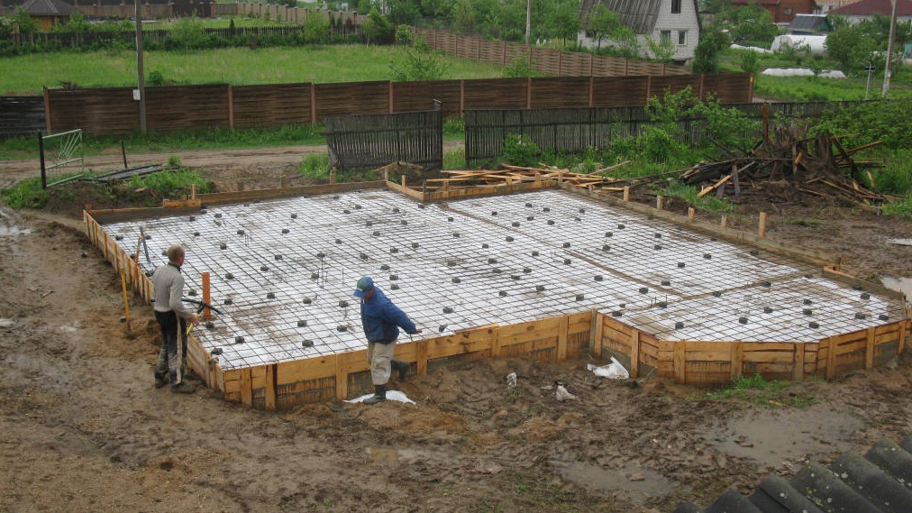 • Монолитный тип. После возведения каркаса фундамента, производится его армирование и бетонирование непосредственно на строительной площадке. Такие фундаменты отличаются высокой устойчивостью и прочностью. Их целостная форма важна для проведения строительства на грунтах, которые являются не очень стабильными;