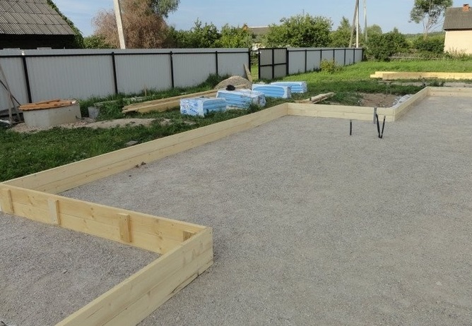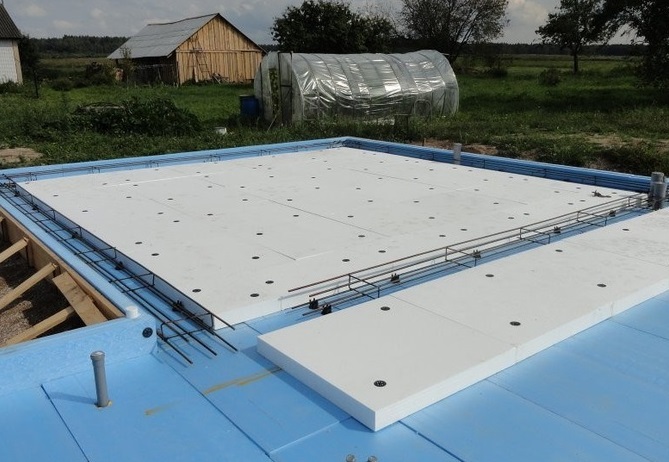 Особенностью фундамента является то, что он, в отличие от других типов, на глубину промерзания грунта не заглубляется. Перед заливкой бетонной смеси формируется основание из смеси песка с щебнем и тщательно утрамбовывается. На этом основании фундамент будто плавает, поэтому его еще называют «плавающей плитой».
